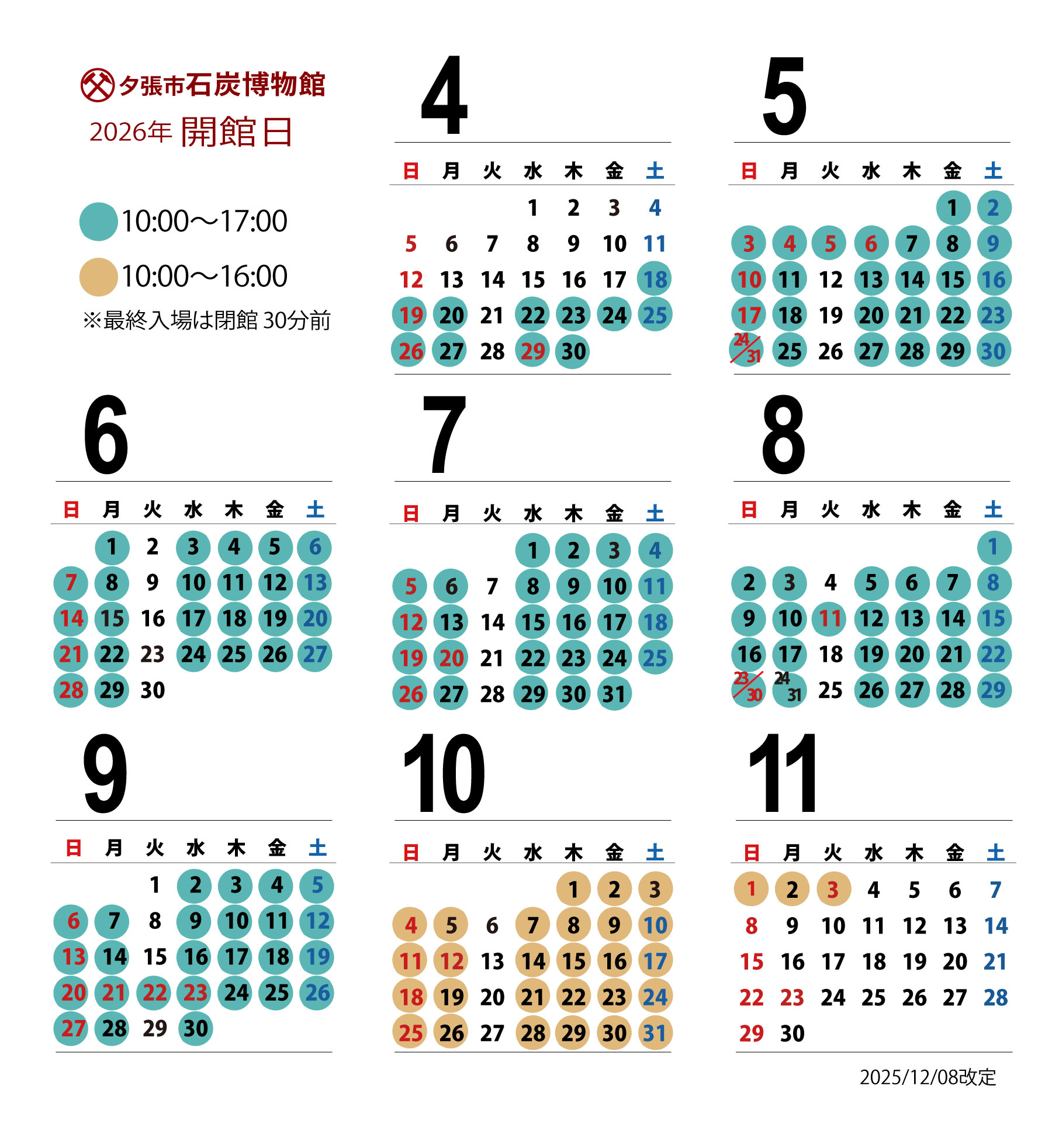 火曜日・冬期(11月上旬~4月下旬)